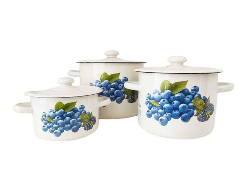 Кастрюля цилиндрическая 2,0 л-1шт, Кастрюля цилиндрическая 3,0 л-1шт, Кастрюля цилиндрическая 4,5л- 1шт. Подходит для всех видов плит. Эмалированная посуда может использоваться для приготовления и хранения любых блюд, на всех видах плит (обычных газовых, керамических, электрических и индукционных).