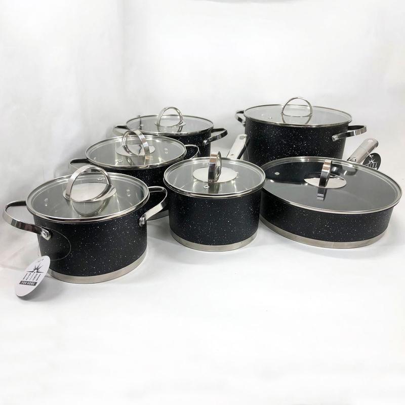🏆 Набор кастрюль-сотейников 12 предметов ASTRA A-2512, Набор кастрюль из нержавеющей стали AF-80 ✨ Набор посуды ASTRA изготовлен из высококачественной нержавеющей стали 18/10 (18% Хром / 10% Никель ) такой материал делает наборы крепкимы и долговечными. Посуда в отличии от других видов металлической посуды не влияет на вкус приготовляемой пищи. Все емкости имеют зеркальную полировку снаружи и матовую внутри. Пятислойное капсульное дно не деформируется при нагреве и обеспечивает быстрое и равномерное распределение тепла. Ручки кастрюль клепные, удобно расположены, эргономичные. . Стеклянные крышки с отверстием для выхода пара позволят контролировать весь процесс приготовления в оптимальном режиме. ✨ Преимущества: - • Пятислойное капсульное дно - • Крышка :стекло/металл - • Количество предметов:12 шт - • Материал: нержавеющая сталь - • Подходит для всех типов плит - • Подходит для мытья в посудомоечной машине - • Практичные ручки - • Гранитное покрытие-черный гранит - • Мерная шкала внутри емкостей ✨ Комплектация: - • Кастрюля с крышкой: диаметр 20x11.5 см, объем 3.6 л - • Ковш с крышкой: диаметр 16x9.5 см,объем 1.9 л - • Кастрюля с крышкой: диаметр 18x10.5 см, объем 2.6 л - • Кастрюля с крышкой: диаметр 16x9.5 см, объем 1,9 л - • Кастрюля с крышкой: диаметр 24x13.5 см, объем 6.1 л - • Сковородка с антипригарным покрытием: диаметр 24x6.5 см,объем 2.9 л 🔧 Дополнительные параметры - • Антипригарное покрытие: Да - • Кастрюля: 4 - • Крышка: жаропрочное стекло - • Цвет: Черный - • Состояние: Новое - • Тип дна: Многослойное - • Производитель: Astra - • Тип: Набор кастрюль - • Страна производитель: Китай - • Материал: Нержавеющая сталь - • Количество предметов в наборе: 12
