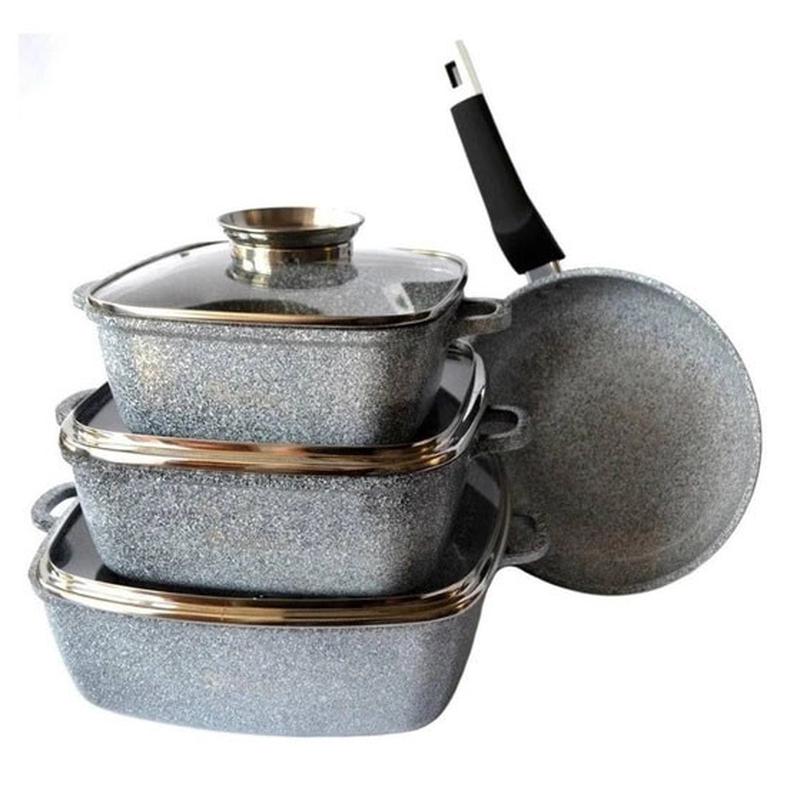 Посуда набор кастрюль мрамор unique, набор из 3х казанов противней гранитное покрытие at-4...
