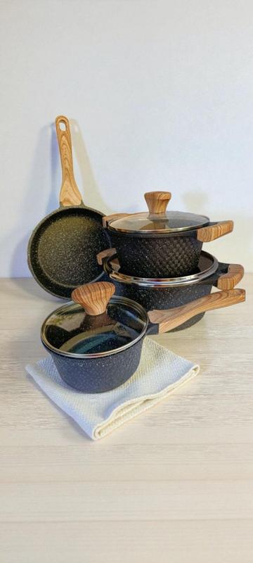 Самі кращі відгуки від користувачів. Якість дійсно супер! Підходить для усіх видів плит. Цим вибором ви будете дуже задоволені, та це буде дуже гарний подарунок. Комплект дуже якісного посуду Styleberg для приготування їжі. Набір включає в себе каструлі, сковорідки та інші необхідні кухонні аксесуари. Виготовлений з міцних матеріалів, має зручні ручки та скляні кришки. Ідеально підходить для повсякденного використання на кухні. Набір кухонного посуду алюмінієвий 7 предметів із кришками — поєднання практичності, якості та стилю для вашої кухні. Представляємо вам стильний і функціональний набір кухонного посуду із 7 предметів, який стане незамінним помічником у щоденному приготуванні їжі. Виготовлений із литого алюмінію з використанням сучасних технологій, цей набір не тільки полегшить кулінарні завдання, а й прикрасить інтер'єр вашої кухні. Цей набір призначений для тих, хто цінує якість, комфорт і довговічність. Ідеально підходить як для досвідчених кулінарів, так і для початківців, які шукають універсальний посуд для повсякденного використання. Характеристики: Набір посуду Styleberg 7 предметів (3035 ST) Тип: набір каструль; Матеріал: литий алюміній; Матеріал кришок: скло; Підходить для всіх видів плит; Каструля: 20 см х 8,5 см (об'єм 2,5 л); Каструля: 24 см х11 см (об'єм 4,4 л); Сковорода: 24 см х 5 см (об'єм 2,4 л); Ковшик: 16 см х 8 см (об'єм 1,3 л); Тришарове дно; Антипригарне гранітне покриття. Комплектація Набір посуду Styleberg 7 предметів (3035 ST) Каструля — 2 шт.; Кришки — 3 шт.; Сковорода — 1 шт.; Ківш — 1 шт.; Паковання: заводська коробка.