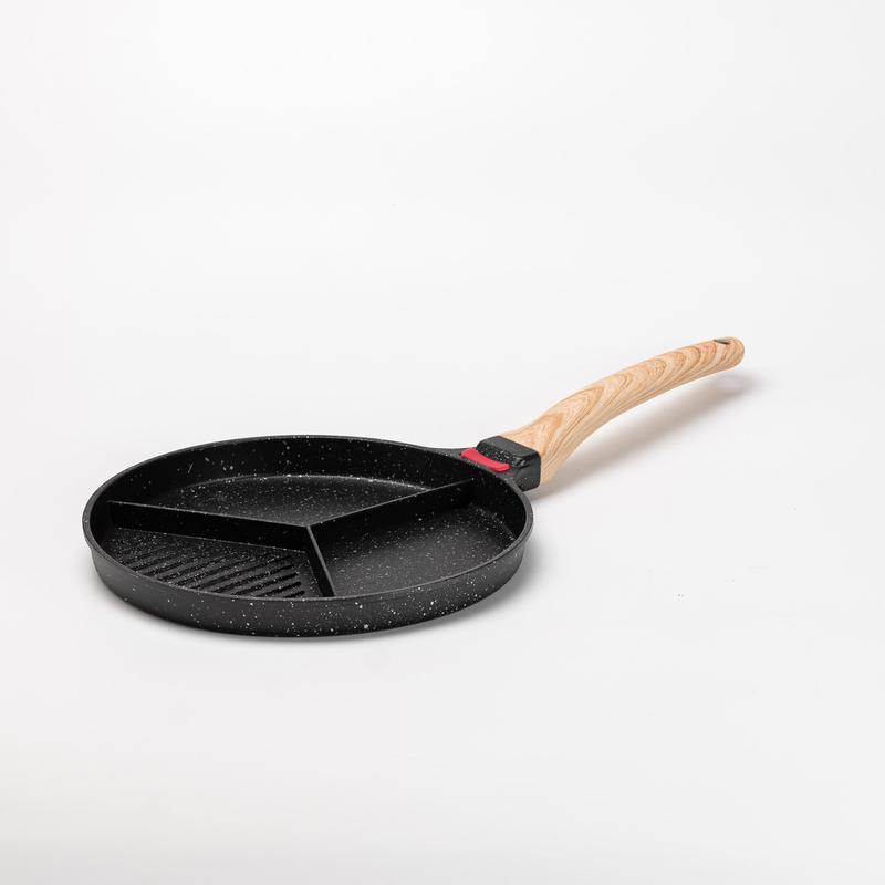 Сковорода гриль ø 25 см на три секции сковорода с антипригарным покрытием круглая черная s...