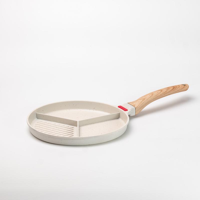 Сковорода гриль ø 25 см на три секции сковорода с антипригарным покрытием круглая бежевая...