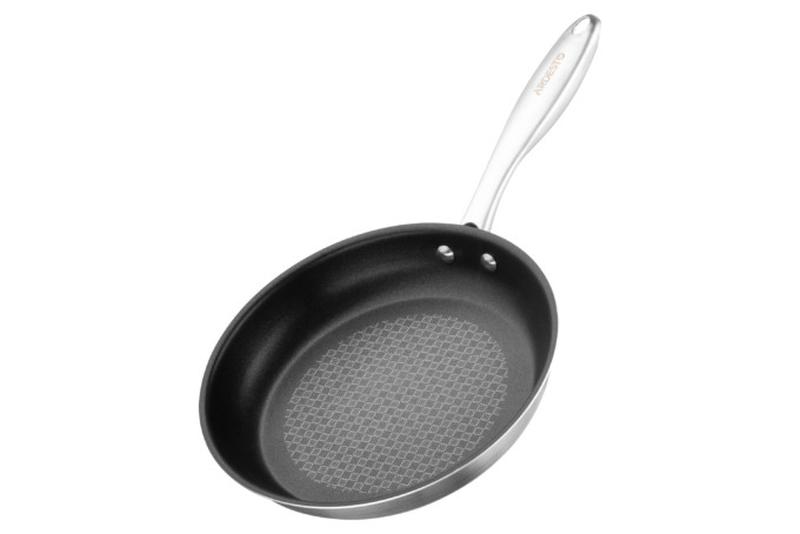 Сковорода ARDESTO Gemini Gazzo (24 см) AR1924GST Сковорода з нержавіючої сталі має протипригарне покриттям чорного кольору із захисною насічкою. Діаметр моделі складає 24 см. За висоти 4,5 см сковорода має однакову товщину бічних стінок і дна - 2 мм. Універсальність моделі зумовлена широкою сумісністю з різними видами плит: газовими, електричними, склокерамічними, індукційними й галогенними. До того ж її можна мити в посудомийній машині.