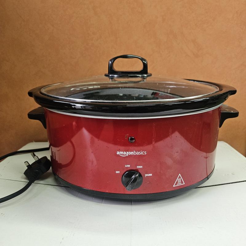 медленноварка Amazon Basics (мультиварка). Этот кухонный прибор предназначен для приготовления супов, рагу и других блюд путем длительного томления при низкой температуре. Емкость: Обычно доступны модели объемом 6.5 л. Настройка температуры: Прибор имеет три режима нагрева (LOW, HIGH, WARM), которые выбираются поворотным регулятором. Материалы: Корпус выполнен из металла (SUS), а внутренняя съемная чаша – из керамики (или каменной керамики), которую можно мыть в посудомоечной машине. Крышка: В комплект входит крышка из закаленного стекла с ручкой для удобного контроля процесса приготовления. Мощность: Модели имеют мощность от 135-160 Вт (для 3.5 л) до 235-280 Вт (для 6.5 л). Назначение: Идеально подходит для приготовления пищи для семьи или для большого объема продуктов (batch cooking). цена 1700 грн
