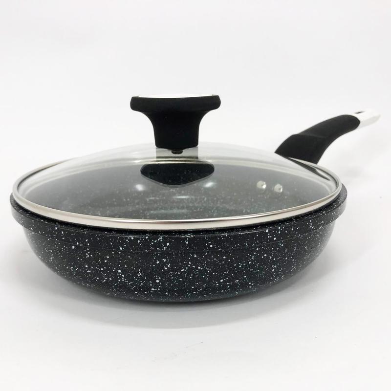 Торговая марка Unique -- известная своими традициями создания качественной и не дорогой посуды. Сковорода с стеклянной крышкой UNIQUE Granite coating изготовлена из литого алюминия с многослойным антипригарным гранитным покрытием. Преимущество данного покрытия -- это многослойное покрытие из нескольких слоев каменной крошки на минеральной основе. Такое покрытие признано одним из самых безопасных для здоровья людей и окружающей среды. Сковорода с стеклянной крышкой UNIQUE Granite coating с антипригарными свойствами, она износостойка и долговечна. Новая система пористого антипригарного покрытия позволяет прожаривать продукты до хрустящей корочки. Стильная и удобная а так же долговечная сковорода UNIQUE с гранитным покрытием найдет свое место на любой кухне. Перед первым использованием вымойте посуду моющим средством, сполосните, просушите. Запрещается использовать металлические губки, а также средства содержащие абразивные добавки и хлор. Для мытья посуды можно использовать посудомоечную машину, так и ручную мойку. Резкий перепад температур может привести к порче покрытия, поэтому не ставьте на горячую конфорку посуду из холодильника. Готовить пищу следует при небольшом или среднем нагреве. Не оставляйте на горячей конфорке посуду на длительное время. Посуда с антипригарным покрытием прослужит дольше, если продукты в ней помешивать деревянными, пластиковыми или силиконовыми инструментами UNIQUE. Если вы храните посуду в стопке -- используйте между предметами специальные вкладыши для хранения посуды, чтобы защитить поверхность от царапин. Диаметр посуды должен совпадать с размером конфорки, при использовании на газовой плите пламя не должно касаться стенок посуды. В этом случаи ручки будут меньше нагреваться. В любом случае во избежание ожогов следует избегать резкой смены температуры при использовании изделия. Нельзя мыть посуду пока она ещё горячая. Остудите её до комнатной температуры. Пожалуйста, соблюдайте рекомендации по уходу, и посуда прослужит вам очень долго. Основные достоинства: - Антипригарные свойства - Экологичность - Легкость ухода - Энергосбережение - Долговечность - Безопасность Характеристики: - Тип: сковородки традиционные - Назначение: универсальная - Цвет: черная - Форма: круглая - Диаметр: 20 см - Крышка: есть - Материал крышки: жаропрочное стекло - Материал корпуса: алюминий - Материал ручки: бакелит - Количество ручек: 1 - Внутреннее антипригарное покрытие: гранитное - Совместимость с источниками тепла: все виды плит Комплектация: - Сковорода - Крышка - Коробка