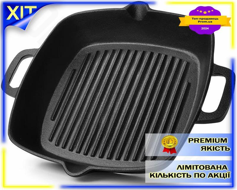 Dm сковорода-гриль чугунная fissman спецификация 2.2 26x26 см с литыми ручками для пригото...