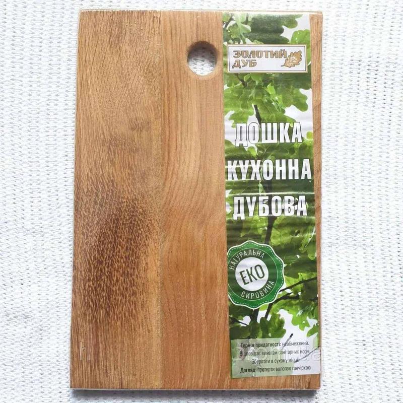 Рисунок и оттенок дерева может быть разный. Материал: Дуб, Размер: 200x300x10 мм При выборе деревянных разделочных досок очень важно быть внимательным, потому что от качества дерева и обработки маслами напрямую зависит качество и долголетие изделия. ЛУЧШЕ ВСЕГО выбирать разделочных доски из твердых сортов деревьев, например дуба. Склейка из нескольких кусков предотвращает деформацию и служит гарантией долголетия доски. Данная разделочная доска очень прочная и уже обработана маслами, тем самым уже готовая к эксплуатации. Цвет древесины может незначительно отличаться от фото, так как все разделочные доски сделаны из натурального дерева, и каждая из них уникальна. Особенности ухода: Покупая деревянные изделия, стоит помнить о том, что их можно мыть только вручную, используя при этом мягкие губки и щадящие средства для посуды, под струей теплой воды. Также нельзя надолго замачивать в воде, а после самого мытья следует немедленно вытереть и высушить. Не рекомендуется хранить изделия в помещениях с большой влажностью. Приблизительно раз в месяц изделия следует продезинфицировать водкой или спиртом для уничтожения микробов, а также для того , чтобы предотвратить неприятный запах. Если запах все-таки появился, то можно протереть поверхность слабым раствором уксуса или лимона. Также ни в коем случае нельзя ставить деревянные изделия в духовку, микроволновую печь, а также класть на плиту. Покупай украинское, поддержи отечественного производителя!