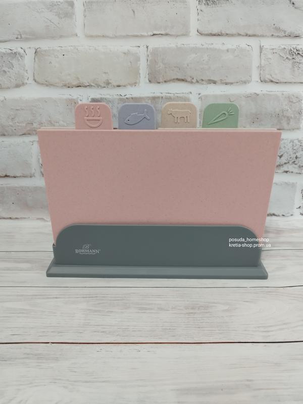 Набор состоит из 5 предметов. Изготовлен из пластика и выполнен в красивых цветных оттенках. Экологичный пластик не впитывает запахи и обладает повышенной устойчивостью к износу и истиранию. Доски не тупят лезвия ножа и их можно использовать в посудомоечной машине. ✔️Количество предметов: 5 ✔️Возможность использования в посудомоечной машине ✔️Легко моется ✔️Цвет: разные цвета Комплектация: ✔️Разделочная доска 29х19 см: 4 шт ✔️Подставка: 1 шт