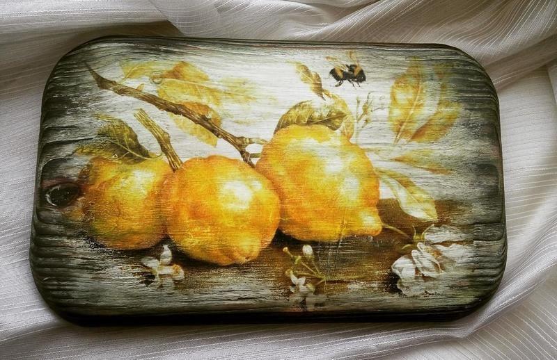 Лимоны... желтобокие, яркие, ароматные... так и просятся сделать добрым чье-то утро 🌿Досочка для подачи, нарезки, сервировки 🌿Для декора использованы безопасные материалы на водной основе 🌿Сосна, обжиг, браширование 🌿22*14 см 🌿Для декора использованы безопасные материалы на водной основе 🌿Рабочая поверхность обработана воском 🌿Может стать помощницей на кухне или подарком для близких Дополнительные характеристики: Назначение : Для подачи