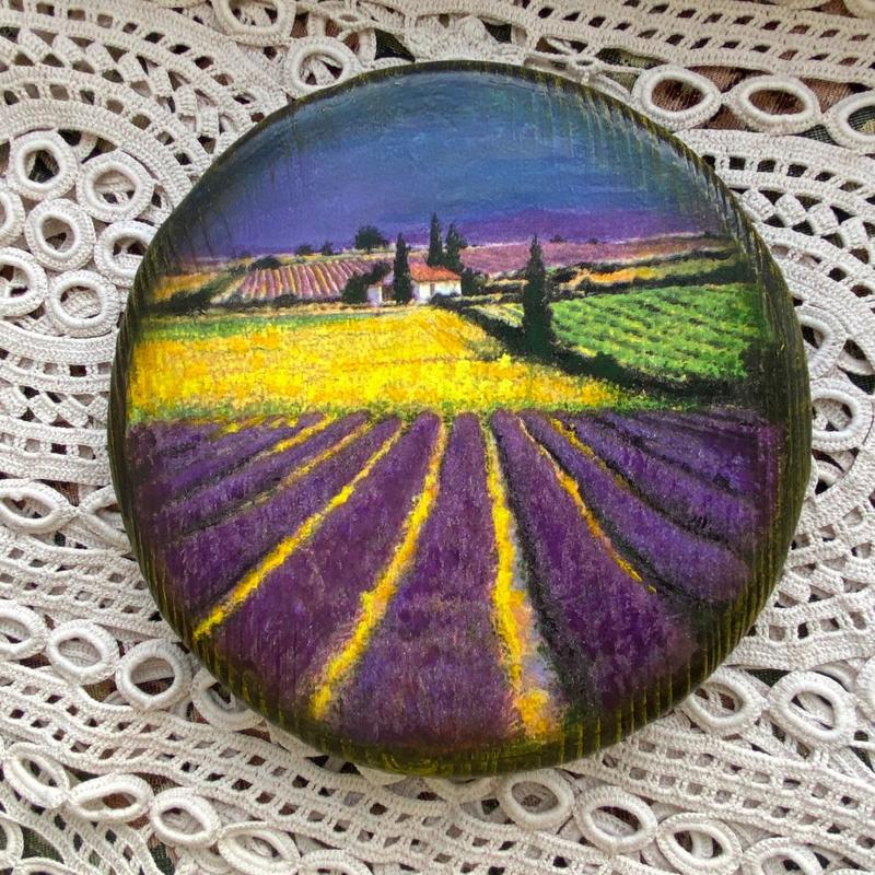 🪻Знойный полдень Прованса... 🪻Доска круглая для сервировки и подачи сыра или других вкусностей. 🪻Прочная, легкая и практичная вещь. 🪻Ручная работа, натуральное дерево - сосна. Обожженная и брашированная. 🪻d 20 см 🪻В работе использованы материалы на водной основе. Обработана воском. Доску можно мыть под струей воды и сразу вытереть, или протереть влажной салфеткой.. 🪻Может стать помощницей и украшением кухни, а также подарком для близких