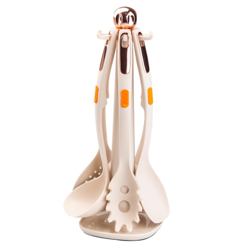 Набор кухонных принадлежностей на подставке 6 штук, бежевый