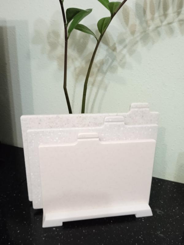 Набор акриловых дощечек на подставке, от наибольшей до меньшей. Очень гармонично смотрится, легка в пользовании, легко мыть, некой плесени