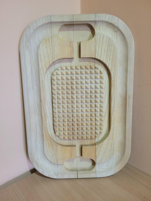 К вашему вниманию интереснейшая бамбуковая двухсторонняя доска для обработки мяса.Одная сторона доски для мяса является многофункциональной, в то же время она идеально ровная.А вот вторая сторона это особенность данного газета.O.O.O.S. отлично подходит для обработки мяса, мяса, маленькие пирамидки не позволяют м,су скользить по прверхности, а осечек по периметру доски задерживает жидкость.Замеры 45×29×2.5 см середина 20×14 см Смотрите и другие Мои объявления есть еще много интересного