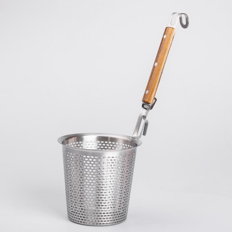 Сито из нержавеющей стали для фритюра и варки макарон - универсальный аксессуар для домашней и профессиональной кухни, который имеет множество вариантов применения. Глубокое сито из нержавеющей стали с маленькими круглыми отверстиями идеально подходит для процеживания жареных и приготовленных ингредиентов, таких как макароны, пельмени или овощи в темпуре. Также подходит для быстрого приготовления и бланширования продуктов прямо в ситечке. Основные характеристики размер 14.2х14.2х13 см. высота с ручкой 34 см. глубина 13 см. вес 280 г. тип поверхности - перфорированный металл. Сито подходит для быстрого приготовления продуктов на пару или в горячем масле мясных, овощных, рыбных закусок, и позволяет практически сразу избавиться от лишнего жира.