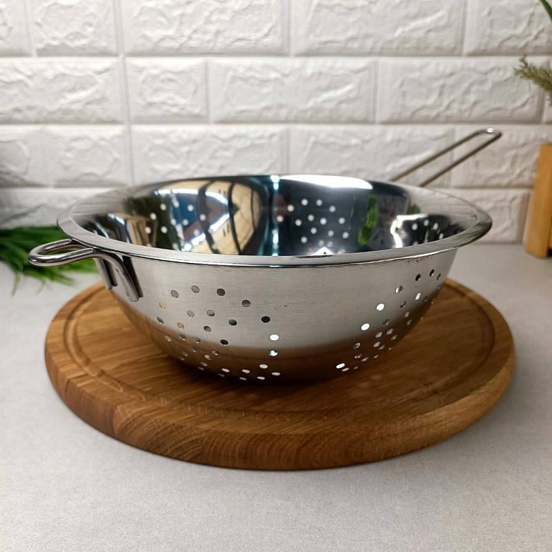 ✨ Дуршлаг A-plus с длинной ручкой! ✔️ Используется для мытья и промывания ягод, грибов, фруктов и овощей ✔️ Подходит для отцеживания макарон, компотов и сырной сыворотки ✔️ Прочная и долговечная нержавеющая сталь ✔️ Удобная длинная ручка для безопасного пользования ✔️ Диаметр: 26 см