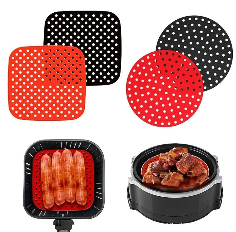 2 шт. Аксессуары для квадратных и круглых аэрофритюрниц - Решетка силиконовая, устойчивы к высоким температурам, легкая очистка, цвет черный.