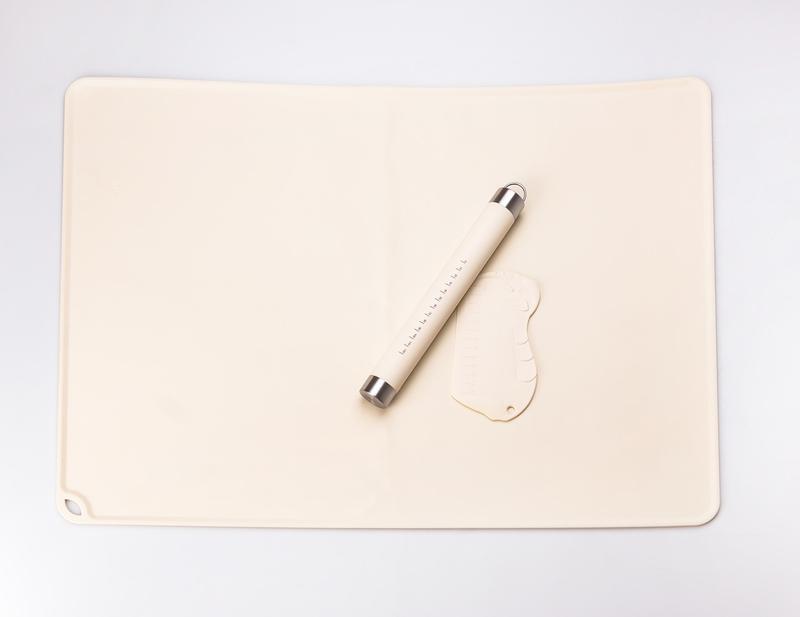 Силиконовый коврик со скалкой для раскатки прямоугольного теста с разметкой бежевый dm-11
