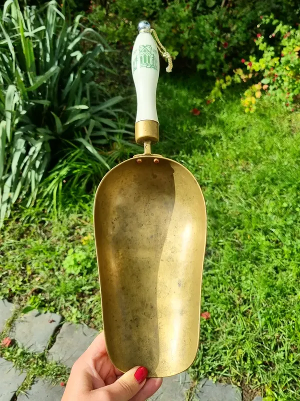 Антикварный редкий бронзовый совок для сыпучих продуктов, достаточно большой.