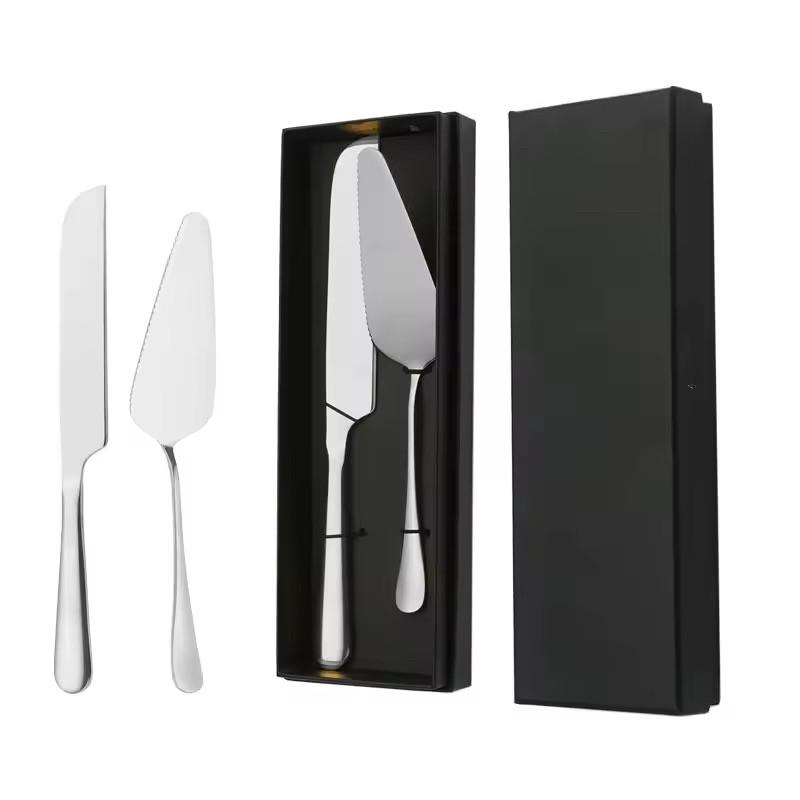 Набор лопатка и нож из нержавеющей стали для торта и десерта серебристый