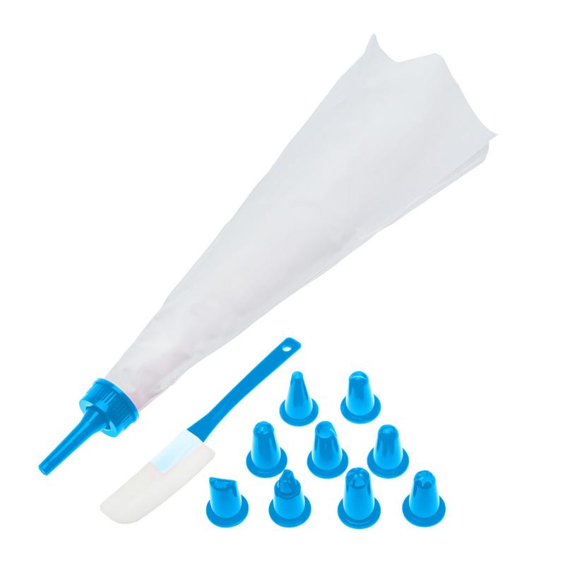 Набор кондитерский (шпатель, мешок силиконовый многоразовый и 9 насадок) голубой
