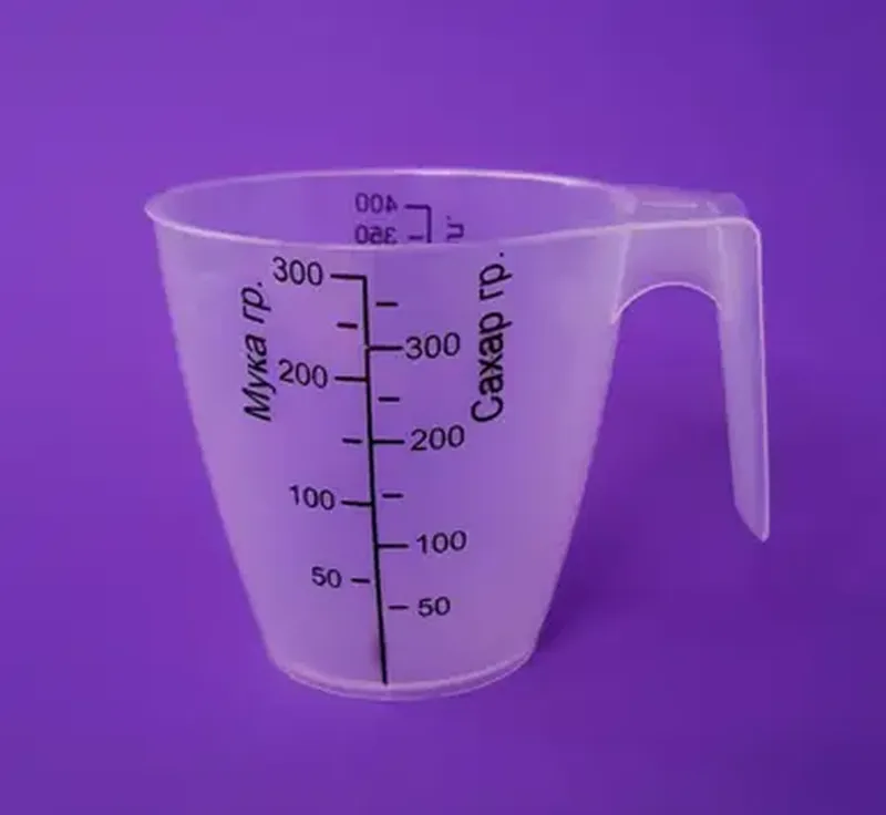 Кружка мерная изготовлена из пищевого пластика. Мерная шкала позволяет отмерять жидкость, сахарный песок, муку. Кружка оснащена практичной ручкой. Для четкого определения количества нужных ингредиентов при приготовлении разнообразных блюд не обойтись без мерной емкости. Прозрачная мерная кружка на 400 мл не занимает много места на кухне и станет настоящим помощником в приготовлении вкусных соусов, выпечки, блинов и прочее. Материал: пищевой пластик Объем: 400 мл Показатели (г): 50-300г Показники (мл): 50-400мл Высота: 95 мм Диаметр: 95 мм Страна производитель: Украина