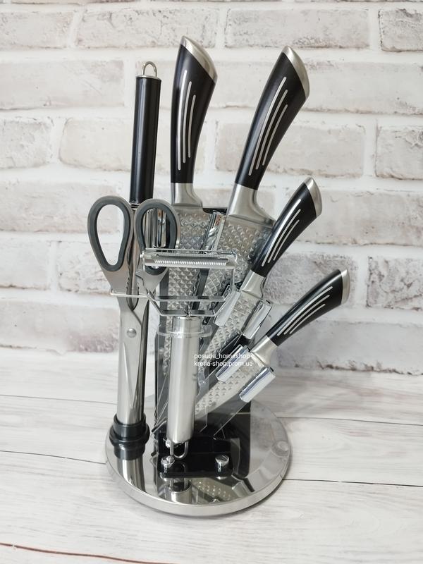С помощью набора ножей процесс приготовления становится проще, быстрее и приятнее, ведь все знают, что хорошее настроение улучшает вкус приготовленной пищи. К тому же, покупка набора ножей значительно более выгодная, чем приобретение каждого из них отдельно. Благодаря высокому качеству материалов ножей они прослужат Вам долго и будут надежными помощниками в быту. Эффектный стильный дизайн ножей дополнит интерьер Вашей кухни и создаст творческое настроение. Комплектация: ✔️Нож шеф-повара ✔️Нож отделочный ✔️Нож-тесак ✔️Ножницы кухонные ✔️Нож маленький ✔️Овощечистка ветчиночистка ✔️Точилка для ножей Эргономичные ручки также металлические, они комфортно держаться в пальцах. Подарочная упаковка - еще одно приятное дополнение. К тому же дизайн комплекта стильный и уникальный.