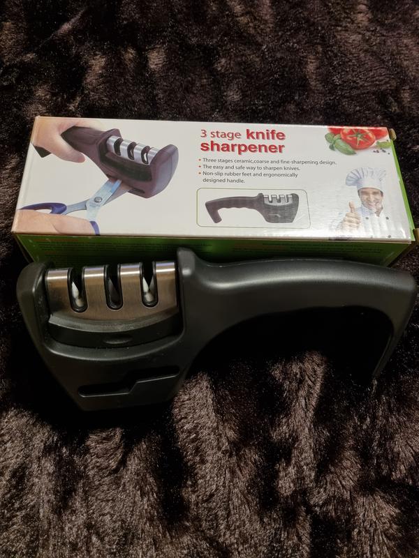 3 степени заточки Точилка для ножей имеет три отсека с разными точильными элементами. Они предназначены для заточки ножей из нержавеющей стали, обеспечивая предварительную подготовку, непосредственно заточку и финишную шлифовку. 1. Точильный элемент из вольфрамовой стали. Обеспечивает первоначальную обработку металла, выпрямление лезвия, грубую заточку. 2. Точильный элемент с алмазным напылением. Предназначен для средней заточки стальных ножей, а также для ножей с керамическими лезвиями. 3. Керамический элемент белого камня. Используется для полировки и ежедневного исправления лезвий из стали.