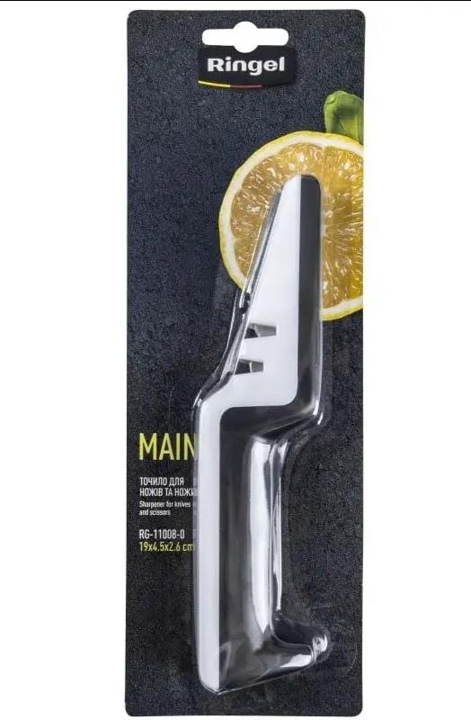 Основные характеристики: Корпус изготовлен из пластика Точилки двух видов: для ножей и ножниц Дополнительно на корпусе расположен точильный камень Удобная рукоятка для удержания при заточке Нельзя мыть в посудомоечной машине Теочило для ножей Ringel Main 19 х 4.5 х 2.6 см