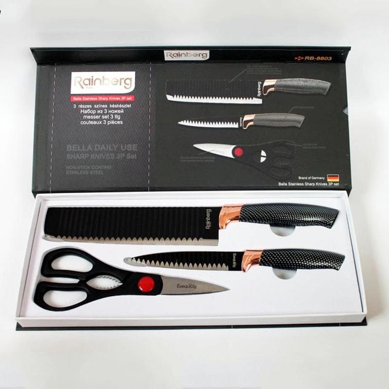 Набор кухонный ножей rainberg rb-8803 3 в 1 из нержавеющей стали с керамическим покрытием