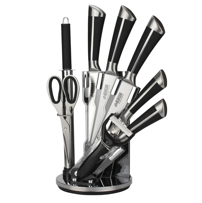 Набор кухонных ножей benson bn-401 pro 9 предметов silver