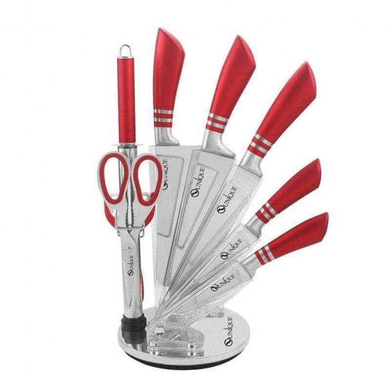 Набор Ножей UNIQUE UN 1832 Ежедневно мы достаточно много времени проводим на кухне. Мы хотим порадовать близких вкусными и полезными блюдами. С помощью набора ножей процесс приготовления становится проще, быстрее и приятнее, а ведь все знают, что хорошее настроение улучшает вкус приготовленной пищи. К тому же покупка набора ножей намного выгоднее, чем приобретение каждого из них по отдельности. Благодаря высокому качеству материалов ножей они прослужат Вам долго и будут надежными помощниками в быту. Эффектный стильный дизайн ножей дополнит интерьер Вашей кухни и создаст творческое настроение.