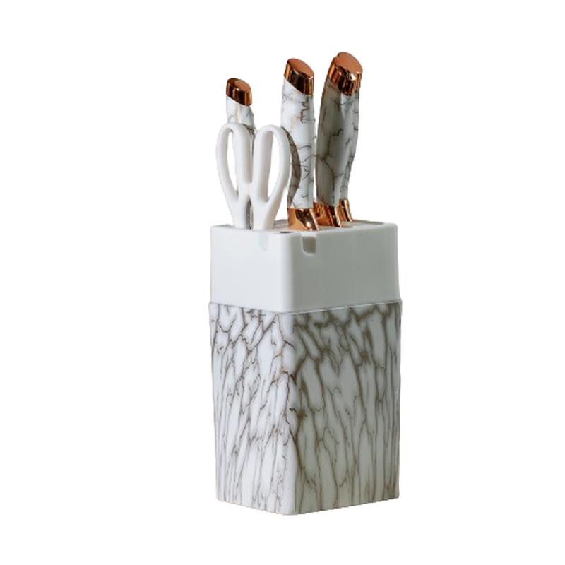 Набор ножей с ножницами с подставкой 5 штук белый