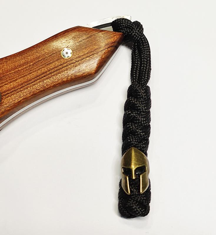 Темляк из плетеного паракорда «Шлем рыцаря» - это декоративное украшение - брелок которое придает Вашему острому изделию изюминку. Это запасной шнур, который всегда под рукой. И в тоже время это гибкое продолжение рукояти за которую можно в считанные секунды извлечь Ваше острое изделие из ножен или кармана брюк. Цена: 170 грн. 1 шт. Темляк имеет фиксирующую петлю. С помощью этой петли он и крепится к рукоятке. Темляк можно крепить также на ключи, фонарики и любые другие небольшие предметы, которые вам нужно быстро извлечь из кармана. Особенностью данной модели является декоративная латунная бусина с хорошей проработкой мелких деталей. Темляк является незаменимым аксессуаром, который не только внешне красивый, но и приносит огромную пользу. Это удобное приспособление значительно упростит обращение с вашим острым изделием, фонариком и другим схожим снаряжением. Также темляки неспроста называют «гибким продолжением рукояти». Практичность темляка очевидна: он упростит обращение с острым изделием, ускорит его вынимание из кармана, облегчит поиск оброненного или затерявшегося изделия среди разного снаряжения. Темляк представляет собой декоративное плетеное изделие. Стильный темляк с оригинальным дизайном изготовлен из паракорда - чрезвычайно прочной нейлоновой стропы. Материал: Паракорд Материал бусины: Латунь Длина: 11,5 см Цвет паракорда: Черный
