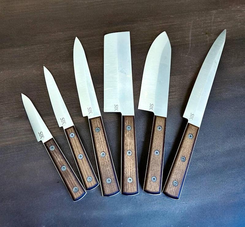 Для отримання консультації ви можете зв'язатися з нашими менеджерами по телефону +38********** або +38**********. Ручна робота Матеріал рукоятки: дерево ясен, металеві стяжки Марка сталі: 1.4116 Твердість сталі, HRC: 58-59 Довжина леза, мм: 215, 170, 155, 150, 110 та 85 Товщина леза, мм: 2 Ширина леза, мм: 30, 49, 50, 28, 20 та 24 Довжина рукояті, мм: 120, 120, 120, 120, 100 та 100 Загальна довжина, мм: 335, 290, 275, 270, 210 та 185 Комплектація набору: янагіба, ніж шеф, накірі, універсальний, овочевий, овочевий міні Вид упаковки: картонна коробка Ножі ручної роботи, зроблені в Україні. Класичний набір якісних ножів для вашої кухні. Якісна німецька нержавіюча сталь 1.4116 - запорука міцності, гостроти та довговічності кожного ножа з цього набору. Клинки ножів виготовлені із нержавіючої сталі марки 1.4116 від німецької компанії TussenKrupp AG. Ця сталь міцна, вона не іржавіє, не покривається плямами. Ножі з неї можна загострити гостро, і цю гостроту вони збережуть надовго. Саме тому нержавіючу сталь 1.4116 використовують для виготовлення ножів та медичного інструменту по всій Європі. Зведення клинка 0,2 мм виконане ручне заточування. Рукоятки виготовлені з дерева ясен, ножі мають приємний колір. Рукоятки промаслені тунговою олією та полірована карнаубським воском та пастою. Непогано заповнюють долоню, ніде не вминає її, не намагається провернутися. Догляд: Рекомендуємо тримати ножі чистими, сухими, без залишків забруднення після використання. Більше товару тут, переходьте за посиланням: ************************************************