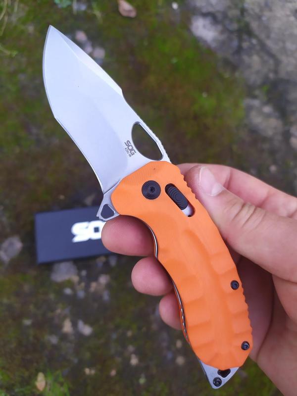 Характеристика: Сталь клинка: D2 Закалка: 60 HRC Полірування клинка: Stonewash Довжина клинка: 7 см Довжина ножа: 16.8 см Товщина обуха: 3 мм Матеріал руків'я: G10 Механізм фіксації: XR-Lock Кліпса: знімна однопозиційна Осьові підшипники: так Вага ножа: 128 г