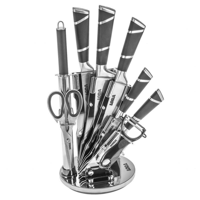 Набір ножів із підставкою 9 предметів black (ns27setkn)