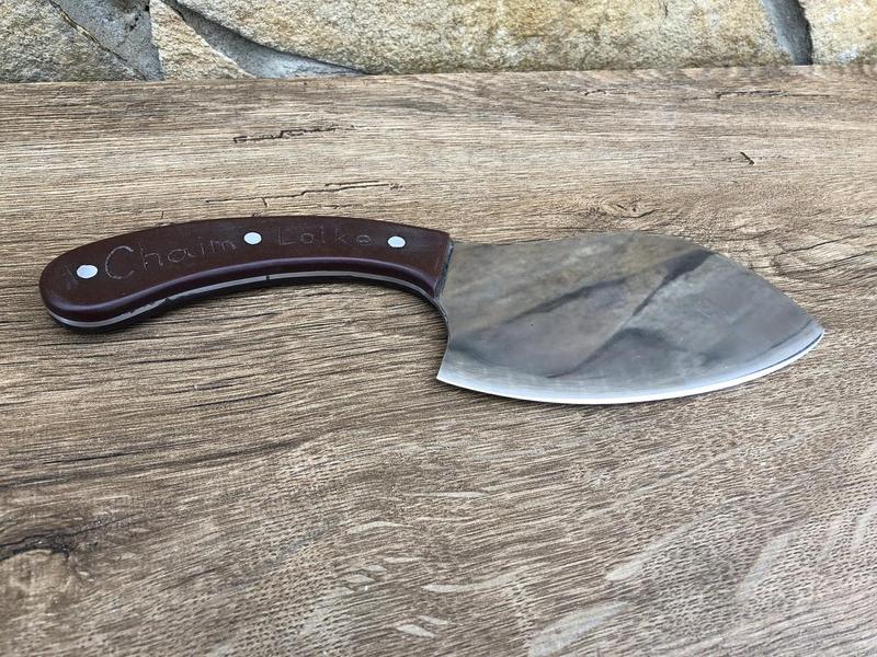 Вы ищете необычный нож ручной работы? Вы в правильном магазине! Вот нож ручной работы из нержавеющей стали с очень удобной ручкой. Вы можете добавить гравировку как на ручке, так и на лезвии, что сделает его еще более уникальным. Это отличный подарок для жениха, корпоративный подарок, подарок для коллеги, для жениха, для отца невесты, на 6-ю годовщину (железный год), на 11-ю годовщину (стальной год), на День отца, рождественский подарок для дедушки или любой другой особый случай. Этот нож заслуживает быть крутым подарком! Размеры: - Длина: 27 см - Длина лезвия: 14,5 см - Ширина: 7,5 см Цвет ручки: темно-коричневый. Материал ручки: пластик. Этот нож на 100% изготовлен вручную и молотком. Лезвие ножа из закаленной стали, нож заточен. Каждый нож уникальный и неповторимый. В стоимость входит гравировка на ручке и лезвии.