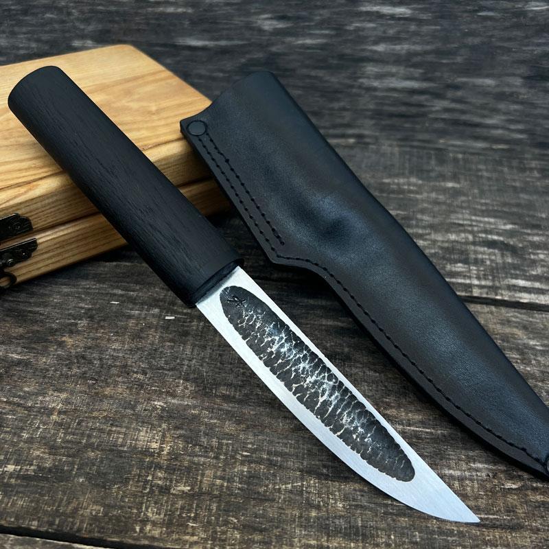 К Вашему вниманию представляем помощника ручной работы якутского типа . Общая длина помощника мм: 275 Длина кл-нка , мм : 140 мм Обработка клинка : сатин Длина рукояти, мм: 135 Наибольшая ширина кл-нка, мм: 26 Толщина: 3.4 мм Материал кл-нка: N690( нержавеющая сталь австрийская сталь ) Твёрдость стали: 60-61 HRC Материал рукояти: дерево Цвет : чорний Материал ножен: натуральная кожа
