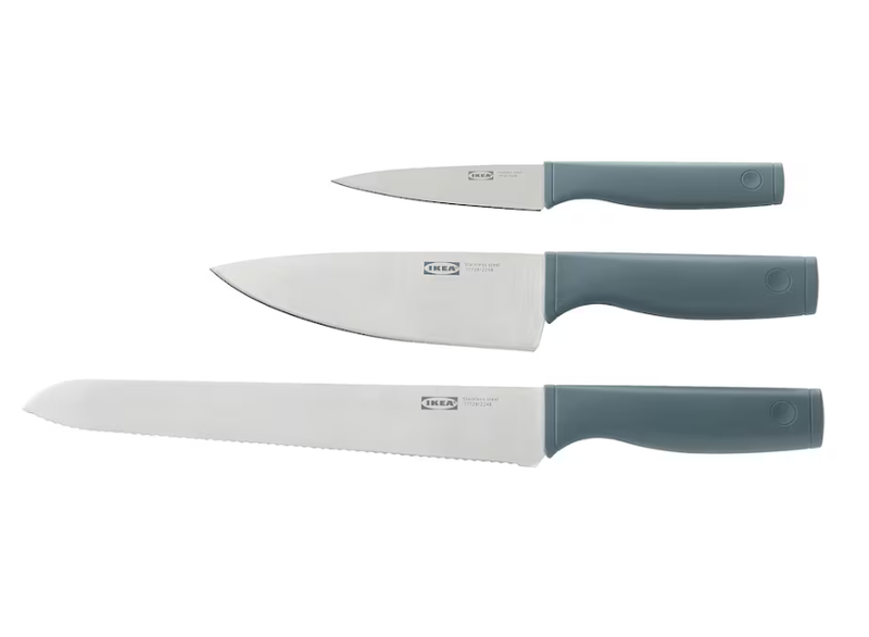 Измельчите, нарежьте кубиками и кусочками - с этими тремя ножами в удобном наборе вы сможете приготовить вкусные блюда для себя и своей семьи. Ножи прочные, устойчивые и удобные для работы на кухне и вашего кошелька. В набор входит: нож для хлеба 23 см (общая длина 35 см), поварской нож 15 см (общая длина 28 см) и нож для очистки овощей 10 см (общая длина 20 см).