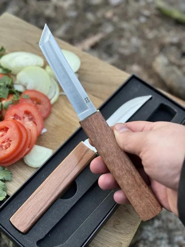 Нож 2в1 сталь d2 столовый кухонный подарочный набор ножей для кухни