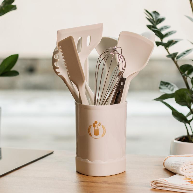 Набор кухонных принадлежностей на подставке 12 штук с деревянной ручкой