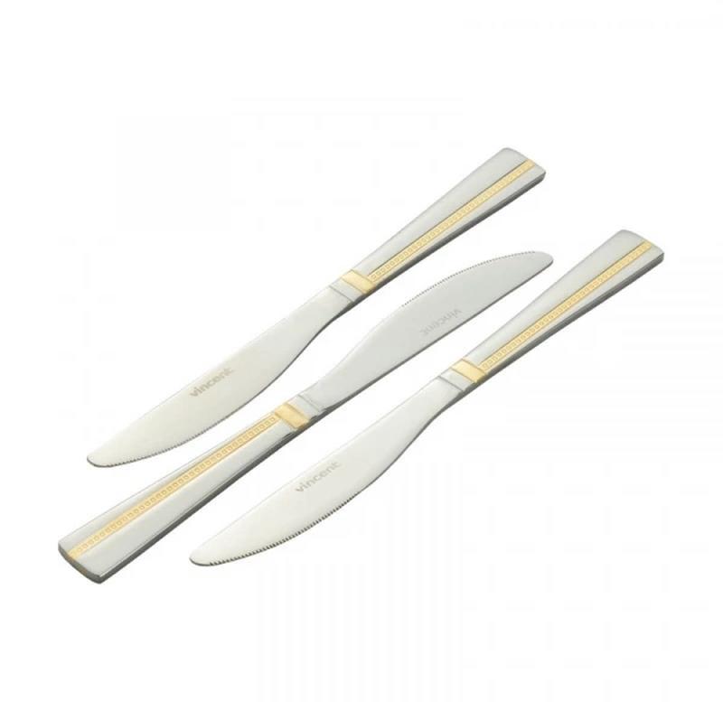 Набір столових ножів Vincent виконані з нержавіючої сталі, завдяки якій вони не піддаються корозії та впливу кислот у побутових умовах. Столові прилади зручні у використанні та зберігають бездоганний зовнішній вигляд протягом тривалого часу.