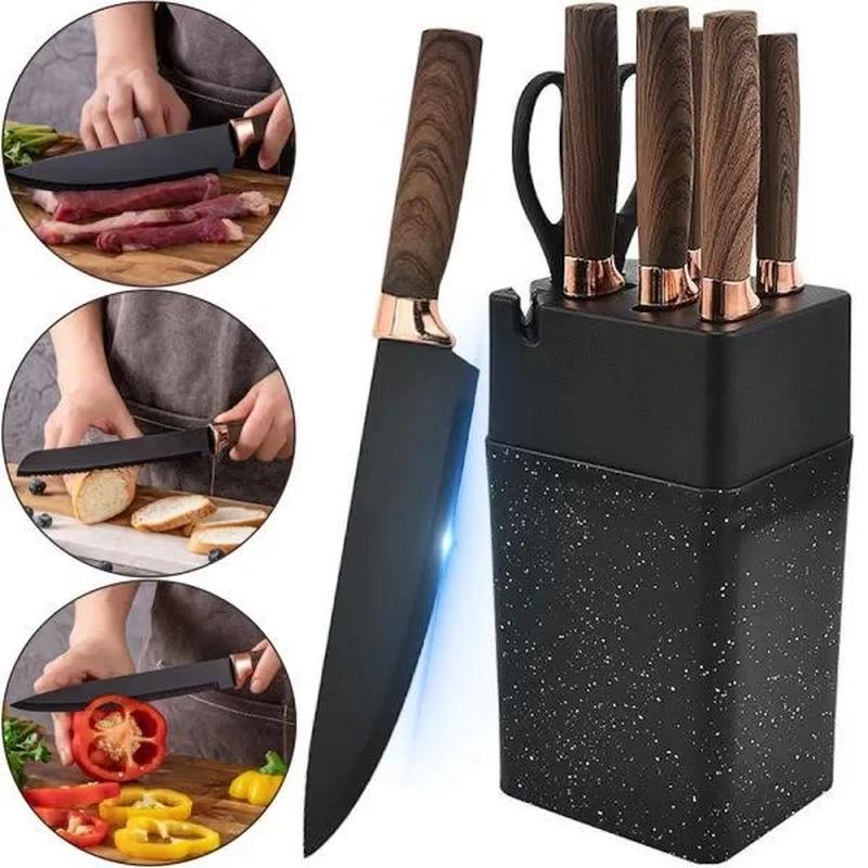 🔪 стильный набор кухонных ножей 7 в 1 на деревянной подставке – максимальное удобство и о...