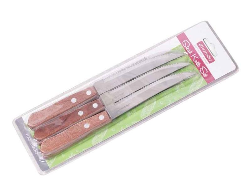 Количество предметов в наборе: 6. Тип ножа: стейковый. Материал: нержавеющая сталь. Материал ручки: дерево. Полировка металла: зеркальная. Подходит для мытья в посудомоечной машине: нет. Упаковка: блистер.