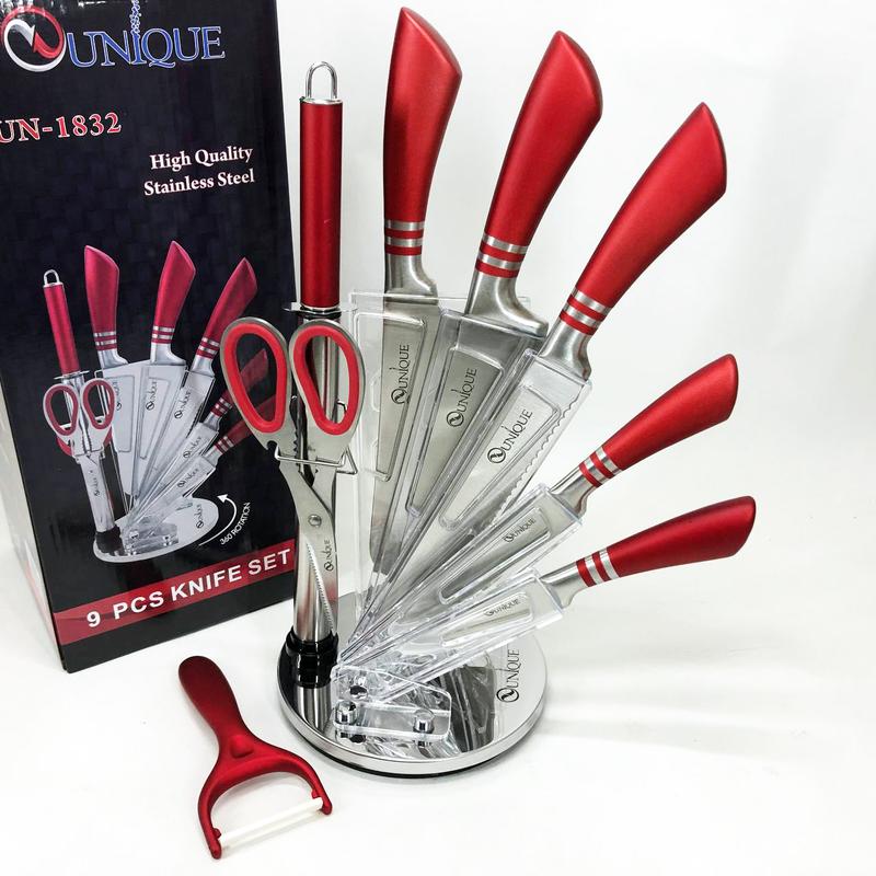 Набор ножей unique un-1832 с подставкой 9 предметов овощечистка точилка ножницы нержавеюща...
