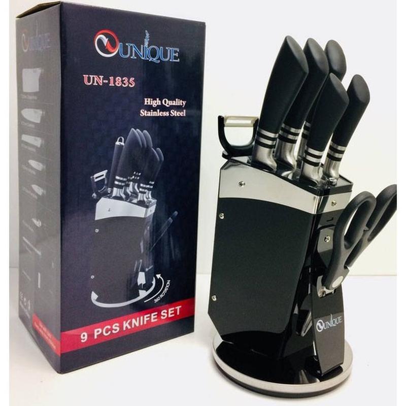 Набор ножей unique un-1835 9 предметов точилка овощечистка нержавеющая сталь на подставке