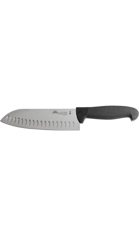 Due Cigni Professional Chef Knife – универсальный нож, предназначенный как для профессионального, так и домашнего использования. Клинок данной модели изготавливается из азотистой нержавеющей стали X50CrMoV15N, благодаря которой сохраняет остроту режущей кромки на протяжении длительного периода и не требует особого ухода. Добавление азота в сталь позволяет ножу лучше переносить контакт с водой. Прямые спуски от самого обуха позволяют довести заточку до бритвенной остроты и выполнять выполнять широкий спектр задач. Рукоять выполнена из стойкого к влияниям окружающей среды нейлона, обладающего антискользящим эффектом. Выемки на клинке предназначены для того, чтобы, при аккуратной и тонкой нарезке, ломтики не прилипали к клинку и не рвались. Нож подходит для нарезания твердых сыров, копченостей, буженины.