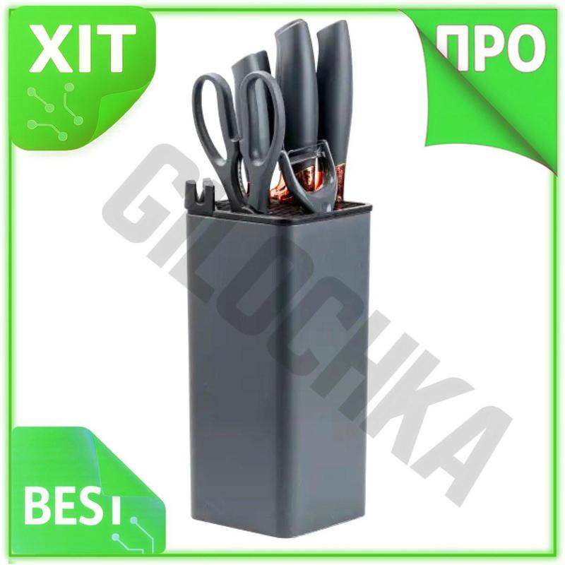 Ve набір кухонних ножів 7 new version предметів з чорними ножицями та овочечисткою для при...