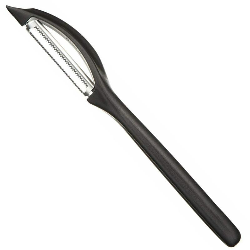 Универсальная овощечистка от всемирной известной компании Victorinox. Оснащена острым микро-зубчатым лезвием, которое легко справится с чисткой любых овощей и фруктов. Подходит для продуктов с толстой и тонкой шкуркой. Особенности: - Плавающее лезвие из нержавеющей стали - Зубчатая заточка - Ручка из полипропилена Длина: 175 мм. Упаковка: фирменная коробка.