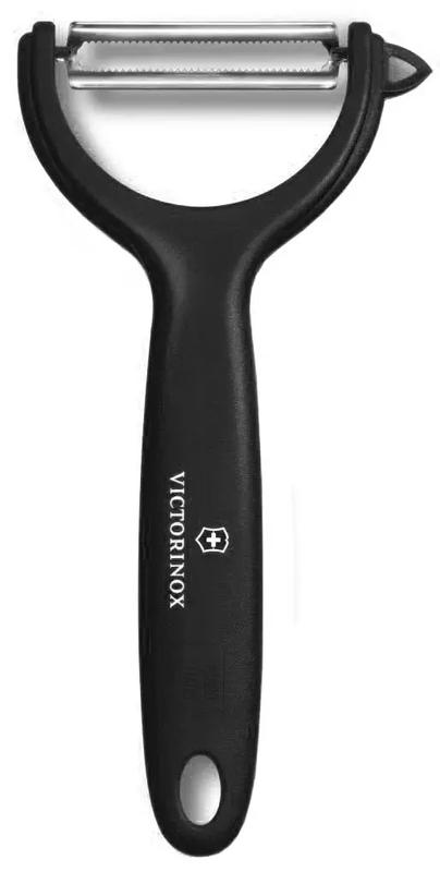 Овочечистка VICTORINOX – чудовий кухонний інструмент. Працювати з ним – одне задоволення: ергономічна ручка і спеціальне мікро-зубчасте лезо допомагають легко відокремити шкірку від ніжного м'якуша, водночас не травмуючи делікатну серцевину, а плаваюче лезо чітко повторює всі вигини й округлості продукту.